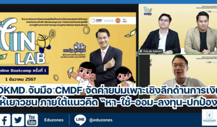 Blog OKMD จับมือ CMDF จัดค่ายบ่มเพาะเชิงลึกด้านการเงินให้เยาวชน ภายใต้แนวคิด “หา-ใช้-ออม-ลงทุน-ปกป้อง” EZ Webmaster December 23, 2024 สำนักงานบริหารและพัฒนาองค์ความรู้ (องค์การมหาชน) หรือ OKMD ร่วมกับกองทุนส่งเสริมการพัฒนาตลาดทุน (CMDF) และมหาวิทยาลัยธรรมศาสตร์ จัดกิจกรรมค่ายบ่มเพาะเชิงลึก (Bootcamp) และการประกวดการประยุกต์ใช้ความรู้ด้านการเงินการลงทุน (Capital Market Hackathon) ภายใต้โครงการคาราวานความรู้ตลาดทุนรุกสู่ภูมิภาค และบ่มเพาะต้นแบบคนรุ่นใหม่เข้าสู่ตลาดทุน โดยได้กระจายความรู้เชิงรุกสู่ทุกภูมิภาคของไทย เพื่อส่งเสริมการเรียนรู้ด้านการเงินและการลงทุน สร้างภูมิคุ้มกันทางการเงินอย่างรอบด้านให้กับเยาวชน มีการจัดกิจกรรมตลาดนัดความรู้ในพื้นที่ 8 จังหวัด ได้แก่ แม่ฮ่องสอน ลำปาง…