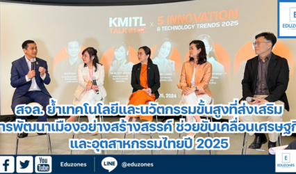 นักศึกษา สจล. ย้ำเทคโนโลยีและนวัตกรรมขั้นสูงที่ส่งเสริมการพัฒนาเมืองอย่างสร้างสรรค์ ช่วยขับเคลื่อนเศรษฐกิจ และอุตสาหกรรมไทยปี 2025 EZ Webmaster December 19, 2024 สถาบันเทคโนโลยีพระจอมเกล้าเจ้าคุณทหารลาดกระบัง (สจล.) จัดเสวนาออนไลน์ ในหัวข้อ “5 Innovation and Technology Trends 2025” จับตาเทรนด์ นวัตกรรมและเทคโนโลยีของโลก ปี 2025 จาก 5…