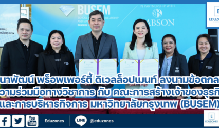 นักศึกษา ธนาพัฒน์ พร็อพเพอร์ตี้ ดิเวลล็อปเมนท์ ลงนามข้อตกลงความร่วมมือทางวิชาการ กับ คณะการสร้างเจ้าของธุรกิจและการบริหารกิจการ มหาวิทยาลัยกรุงเทพ (BUSEM) EZ Webmaster December 13, 2024 บริษัท ธนาพัฒน์ พร็อพเพอร์ตี้ ดิเวลล็อปเมนท์ จำกัด (มหาชน) และ คณะการสร้างเจ้าของธุรกิจและการบริหารกิจการ มหาวิทยาลัยกรุงเทพ (BUSEM) ร่วมลงนามบันทึกข้อตกลงความร่วมมือทางวิชาการ เพื่อส่งเสริมและพัฒนาศักยภาพบุคลากรและเจ้าของธุรกิจรุ่นใหม่ในอุตสาหกรรมการพัฒนาอสังหาริมทรัพย์ โดยมีเป้าหมายเพื่อสร้างความยั่งยืนในการพัฒนาและการเติบโตของธุรกิจในอนาคต ณ ศูนย์ BCE…