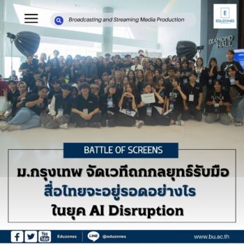 ม.กรุงเทพ จัดเวทีถกกลยุทธ์รับมือสื่อไทยจะอยู่รอดอย่างไรในยุค AI Disruption tui sakrapee May 16, 2025 มหาวิทยาลัยกรุงเทพ จัดงานสัมมนาระดับประเทศ BRS CONFERENCE 2025 โดยปีนี้จัดขึ้นเป็นปีแรกภายใต้ Concept “Battle of Screens: สื่อไทยจะอยู่รอดอย่างไรในยุค AI Disruption” จัดโดยนักศึกษาและคณาจารย์ภาควิชา Broadcasting and Streaming Media Production คณะนิเทศศาสตร์ เวทีสำคัญที่รวบรวมผู้เชี่ยวชาญในอุตสาหกรรมสื่อสตรีมมิ่ง อุตสาหกรรมบันเทิง และครีเอเตอร์ชั้นนำของประเทศไทย ร่วมค้นหาแนวทางรับมือและการปรับตัวอย่างสร้างสรรค์กับความเปลี่ยนแปลงของโลกยุคดิจิทัล พร้อมแนวทางผลักดัน Soft Power ไทยด้วยอุตสาหกรรมสื่อสู่สายตาทั่วโลก จัดขึ้น ณ Diamond Hall ชั้น 5 อาคาร A3 มหาวิทยาลัยกรุงเทพ งานสัมมนาครั้งนี้มุ่งเจาะลึกผลกระทบของเทคโนโลยีปัญญาประดิษฐ์ (AI) ที่กำลังเปลี่ยนแปลงโฉมหน้าของอุตสาหกรรมสื่ออย่างรวดเร็ว ทั้งในแง่ของการผลิต การคัดกรอง และนำเสนอเนื้อหา พร้อมแนวทางที่ภาคอุตสาหกรรมจะสามารถปรับตัวให้ทันโลก เพื่อสร้างความยั่งยืนในอนาคต โดยภายในงานเปิดเวทีถกประเด็นจัดเต็มทุกมิติความคิดตลอด… Continue Reading