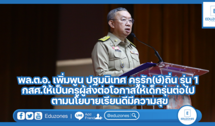 ครู-อาจารย์ พล.ต.อ. เพิ่มพูน ปฐมนิเทศ ครูรัก(ษ์)ถิ่น รุ่น 1 กสศ.ให้เป็นครูผู้ส่งต่อโอกาสให้เด็กรุ่นต่อไป ตามนโยบายเรียนดีมีความสุข EZ Webmaster November 28, 2024 พลตำรวจเอกเพิ่มพูน ชิดชอบ รัฐมนตรีว่าการกระทรวงศึกษาธิการ เป็นประธานในการปฐมนิเทศข้าราชการครูรัก(ษ์)ถิ่น รุ่นที่ 1 “การส่งต่อโอกาสสู่ผู้เรียนในพื้นที่ห่างไกล” และร่วมปาฐกถาพิเศษ เรื่อง “ครูรัก(ษ์)ถิ่นเพื่อพัฒนาท้องถิ่น” ณ หอประชุมคุรุสภา กระทรวงศึกษาธิการ โดยความร่วมมือของ กองทุนเพื่อความเสมอภาคทางการศึกษา,กระทรวงศึกษาธิการ, กระทรวงการอุดมศึกษา…