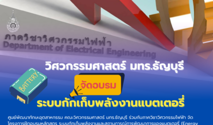 Blogกิจกรรม วิศวกรรมศาสตร์ มทร.ธัญบุรี จัดอบรม ระบบกักเก็บพลังงานแบตเตอรี่ tui sakrapee November 27, 2024 รองศาสตราจารย์ ดร.สรพงษ์ ภวสุปรีย์ คณบดีคณะวิศวกรรมศาสตร์ มหาวิทยาลัยเทคโนโลยีราชมงคลธัญบุรี (มทร.ธัญบุรี) เผยว่า ศูนย์พัฒนาทักษะอุตสาหกรรม คณะวิศวกรรมศาสตร์ มทร.ธัญบุรี ร่วมกับภาควิชาวิศวกรรมไฟฟ้า จัดโครงการฝึกอบรมหลักสูตร ระบบกักเก็บพลังงานและสถานการณ์การพัฒนาการของแบตเตอรี่ (Energy Storage System (ESS)…