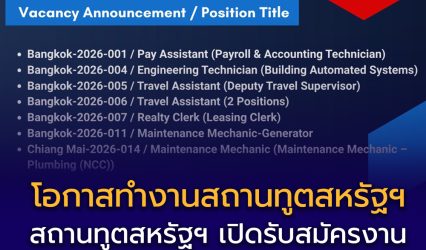 Blogนักศึกษา สถานทูตสหรัฐอเมริกาในประเทศไทย เปิดรับสมัครงานหลายตำแหน่ง ปี 2026 โอกาสทำงานองค์กรระดับโลก EZ Webmaster January 25, 2026 สถานทูตสหรัฐอเมริกาในประเทศไทย เปิดรับสมัครงานหลายตำแหน่ง ปี 2026 โอกาสทำงานองค์กรระดับโลก สถานทูตสหรัฐอเมริกาในประเทศไทยประกาศเปิดรับสมัครบุคลากรเข้าทำงาน หลายตำแหน่งประจำปี 2026 เปิดโอกาสให้ผู้ที่สนใจงานสายอินเตอร์ได้ร่วมทำงานกับองค์กรระดับนานาชาติพร้อมสั่งสมประสบการณ์ในสภาพแวดล้อมการทำงานระดับโลก การเปิดรับสมัครครั้งนี้ครอบคลุมทั้งพื้นที่ กรุงเทพมหานคร และ จังหวัดเชียงใหม่เหมาะสำหรับผู้ที่มีทักษะด้านธุรการ การเงิน วิศวกรรม งานอาคาร…