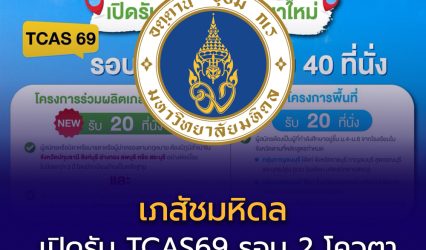 Blogนักเรียนมหาวิทยาลัย เภสัชมหิดล เปิดรับ TCAS รอบ 2 โควตา ปีการศึกษา 2569 รับรวม 40 ที่นั่ง EZ Webmaster January 25, 2026 เภสัชมหิดล เปิดรับ TCAS รอบ 2 โควตา ปีการศึกษา 2569 รับรวม 40 ที่นั่ง มหาวิทยาลัยมหิดลโดย คณะเภสัชศาสตร์ มหาวิทยาลัยมหิดลประกาศเปิดรับสมัครนักศึกษาใหม่ใน หลักสูตรเภสัชศาสตรบัณฑิตผ่านระบบ TCAS…