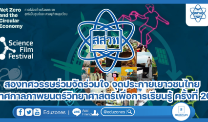 ครู-อาจารย์นักเรียน สองทศวรรษร่วมจัดร่วมใจ จุดประกายเยาวชนไทย เทศกาลภาพยนตร์วิทยาศาสตร์เพื่อการเรียนรู้ ครั้งที่ 20 EZ Webmaster November 7, 2024 หากเธอคือ “กล้าไม้”..…จำเนียรกาลผ่านไปก็เจริญวัยเป็น “ไม้ใหญ่” ที่แผ่กิ่งก้านสาขาให้ร่มเงา ชวนชมดอกผลร่มรื่นชื่นใจ ใต้ร่มไม้กิ่งใบยังมีเด็ก ๆ วิ่งเล่นกันเกรียวกราว ซึ่งต่อมาต่างก็ทยอยกัน เป็นหนุ่ม เป็นสาว เติบโตพัฒนาไปตามเส้นทางสู่อนาคต สองทศวรรษเต็ม ๆ ที่เธออยู่คู่กับการศึกษาไทย ทอดตาดูเยาวชนวัยใสที่เคยตื่นตาตื่นใจกับเธอ บัดนี้พวกเขาส่วนหนึ่งได้…
