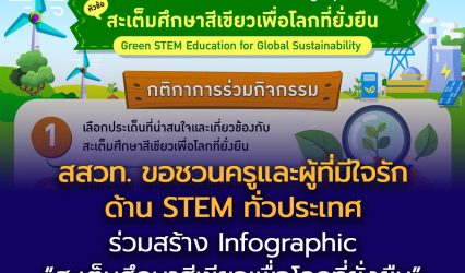 Blogครู-อาจารย์นักเรียน สสวท. ขอชวนครูและผู้ที่มีใจรักด้าน STEM ทั่วประเทศ ร่วมสร้าง Infographic “สะเต็มศึกษาสีเขียวเพื่อโลกที่ยั่งยืน” สร้างแรงบันดาลใจสู่อนาคตยั่งยืน EZ Webmaster January 21, 2026 สถาบันส่งเสริมการสอนวิทยาศาสตร์และเทคโนโลยี (สสวท.) โดยเฟสบุ๊ก IPST Thailand ขอเชิญครู STEM บุคลากรทางการศึกษา และผู้สนใจทั่วประเทศ ร่วมกิจกรรมจัดทำ Infographic ภายใต้หัวข้อ “สะเต็มศึกษาสีเขียวเพื่อโลกที่ยั่งยืน (Green STEM Education for Global Sustainability)” เพื่อถ่ายทอดแนวคิด ความรู้และนวัตกรรมด้านวิทยาศาสตร์ คณิตศาสตร์ และเทคโนโลยี…