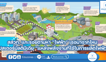นักเรียน สสวท. แกะรอยตามหา “ไฟฟ้า” เธอมาจากไหน โปสเตอร์มัลติมีเดีย “แหล่งพลังงานที่ใช้ในการผลิตไฟฟ้า” EZ Webmaster October 8, 2024 สถาบันส่งเสริมการสอนวิทยาศาสตร์และเทคโนโลยี (สสวท.) พาพบสื่อเรียนรู้โปสเตอร์มัลติมีเดีย เรื่อง แหล่งพลังงานที่ใช้ในการผลิตไฟฟ้า อธิบายกระบวนการผลิตไฟฟ้าจากแหล่งพลังงานที่ใช้ในการผลิตไฟฟ้าแหล่งต่าง ๆ ได้แก่ น้ำ แสงอาทิตย์ ลม ความร้อนใต้พิภพ แก๊สธรรมชาติ ถ่านหิน ชีวมวล นำเสนอด้วยแอนิเมชันภาพเคลื่อนไหว และ รูปภาพ…