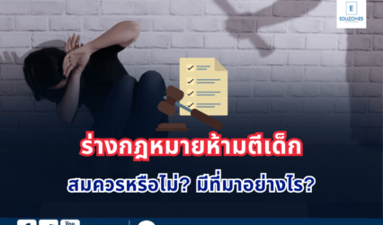 Blog ร่างกฎหมายห้ามตีเด็ก สมควรหรือไม่? มีที่มาอย่างไร? EZ Webmaster October 8, 2024 เครือข่ายสิทธิเด็ก พร้อมผลักดันปรับแก้กฎหมายแพ่งและพาณิชย์ มาตรา 1567 ผู้ใช้อำนาจปกครองมีสิทธิทำโทษบุตรตามสมควรเพื่อว่ากล่าวสั่งสอน โดยเสนอปรับแก้คือ ต้องไม่ทุบตี ไม่ทำร้ายร่างกาย และวาจาต่อเด็กในทุกรูปแบบ เพราะทำให้เด็กมีความเสี่ยงพฤติกรรมก้าวร้าว ขาดความยั้งคิด ไม่สามารถควบคุมอารมณ์ได้ มีความเครียดว่าจะถูกกระทำความรุนแรงซ้ำ พร้อมระบุว่า การกระทำความรุนแรงกับเด็ก มีความเสี่ยงที่จะให้เด็กมีพฤติกรรมก้าวร้าวและอาจเข้าสู่วังวนการใช้ความรุนแรงในอนาคต…
