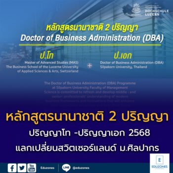 หลักสูตรนานาชาติ 2 ปริญญา ปริญญาโท – เอก แลกเปลี่ยนสวิตเซอร์แลนด์ มหาวิทยาลัยศิลปากร EZ Webmaster April 12, 2025 หลักสูตรนานาชาติ 2 ปริญญาปริญญาโท MAS จาก Lucerne Universityปริญญาเอก DBA จาก มหาวิทยาลัยศิลปากร หลักสูตรนานาชาติ 2 ปริญญา Doctor of Business Administration (DBA)หลักสูตรความร่วมมือระหว่าง คณะวิทยาการจัดการ มหาวิทยาลัยศิลปากร กับ Lucerne University of Applied Sciences & Arts, Switzerland“ร่วมแลกเปลี่ยนเรียนรู้ ณ ประเทศสวิตเซอร์แลนด์”กำหนดการรับสมัครนักศึกษาระดับปริญญาโท -ปริญญาเอก ประจำปีการศึกษา 2568กำหนดการรับสมัครตั้งแต่บัดนี้ – 7 พ.ค.68รายละเอียดหลักสูตร https://ms.su.ac.th/th/courseรายละเอียดการรับสมัคร https://graduate.su.ac.th/courseสอบถามข้อมูล โทร.032-594031, 083-926515 Continue Reading