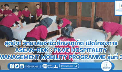 นักศึกษา สุดปัง! วิทยาลัยอาชีวศึกษาภูเก็ต เปิดโครงการ ASEAN-ROK : PKVC HOSPITALITY MANAGEMENT MOBILITY PROGRAMME รุ่นที่ 3 EZ Webmaster October 4, 2024 นายยศพล เวณุโกเศศ เลขาธิการคณะกรรมการการอาชีวศึกษา เปิดเผยว่า สำนักงานคณะกรรมการการอาชีวศึกษา ร่วมกับ สภาหอการค้าและอุตสาหกรรมสาธารณรัฐเกาหลี (Korea Chamber of Commerce and Industry: KCCI) ดำเนินโครงการความร่วมมือ ASEAN–…