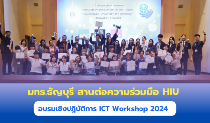 Blogนักศึกษา มทร.ธัญบุรี สานต่อความร่วมมือ HIU อบรมเชิงปฏิบัติการ ICT Workshop 2024 tui sakrapee October 1, 2024 มหาวิทยาลัยเทคโนโลยีราชมงคลธัญบุรี ได้ลงนามในบันทึกความเข้าใจ (MOU) กับ Hokkaido Information University (HIU) ประเทศญี่ปุ่น และเพื่อเป็นการสานต่อความร่วมมือทางด้านวิชาการระหว่างมหาวิทยาลัย รองศาสตราจารย์ ดร.สมหมาย ผิวสอาด รักษาการในตำแหน่งอธิการบดีมหาวิทยาลัยเทคโนโลยีราชมงคลธัญบุรี เผยว่า เพื่อเป็นการสานต่อความร่วมมือทางด้านวิชาการระหว่างมหาวิทยาลัย…