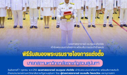 Blogครู-อาจารย์ พิธีรับสนองพระบรมราชโองการแต่งตั้งนายกสภามหาวิทยาลัยราชภัฏสวนสุนันทา tui sakrapee October 1, 2024 พิธีรับสนองพระบรมราชโองการแต่งตั้งนายกสภามหาวิทยาลัยราชภัฏสวนสุนันทา วันอังคารที่ 1 ตุลาคม พ.ศ.256 รองศาสตราจารย์ ดร.ฤๅเดช เกิดวิชัย เข้ารับพระบรมราชโองการ พร้อมสังวาลประจำตำแหน่งนายกสภามหาวิทยาลัยราชภัฏสวนสุนันทา โดย ผู้ช่วยศาสตราจารย์ ดร.คมสัน โสมณวัตร เลขานุการสภามหาวิทยาลัยเป็นผู้เชิญประกาศสำนักนายกรัฐมนตรี เรื่อง…