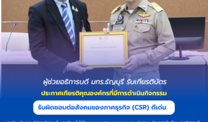 Blogครู-อาจารย์ ผู้ช่วยอธิการบดี มทร.ธัญบุรี รับเกียรติบัตรประกาศเกียรติคุณองค์กรที่มีการดำเนินกิจกรรมความรับผิดชอบต่อสังคมของภาคธุรกิจ (CSR) ดีเด่น tui sakrapee September 30, 2024 ผศ.ณัฐ แก้วสกุล ผู้ช่วยอธิการบดี มทร.ธัญบุรี ได้รับมอบหมายจาก รศ.ดร.สมหมาย ผิวสอาด รักษาการในตำแหน่งอธิการบดีมหาวิทยาลัยเทคโนโลยีราชมงคลธัญบุรี เข้ารับเกียรติบัตรประกาศเกียรติคุณองค์กรที่มีการดำเนินกิจกรรมความรับผิดชอบต่อสังคมของภาคธุรกิจ (CSR) ดีเด่น จังหวัดปทุมธานี ประจำปี ๒๕๖๗ โดยมีการดำเนิน กิจกรรมที่เป็นประโยชน์ต่อจังหวัดปทุมธานีอย่างต่อเนื่อง…