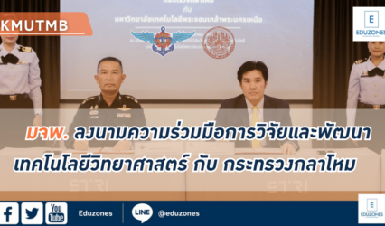 Blog มจพ. ร่วมมือการวิจัยและพัฒนาเทคโนโลยีและวิทยาศาสตร์ กับ กระทรวงกลาโหม EZ Webmaster September 13, 2024 มจพ. ลงนามความร่วมมือการวิจัยและพัฒนาเทคโนโลยีและวิทยาศาสตร์ กับ กระทรวงกลาโหม ศ.ดร.สุชาติ เซี่ยงฉิน อธิการบดี มหาวิทยาลัยเทคโนโลยีพระจอมเกล้าพระนครเหนือ (มจพ.) ศ.ดร.สมฤกษ์ จันทรอัมพร รองอธิการบดีฝ่ายวิจัยและพัฒนาเทคโนโลยีสารสนเทศ และ รศ.ดร.สุรพันธ์ ยิ้มมั่น รองอธิการบดีฝ่ายส่งเสริมอุตสาหกรรมและพัฒนาธุรกิจศึกษา…