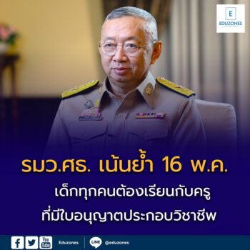รมว.ศธ. เน้นย้ำ 16 พ.ค. เปิดเทอมนี้ “เด็กทุกคนต้องเรียนกับครูที่มีใบอนุญาตประกอบวิชาชีพ” EZ Webmaster April 2, 2025 รมว.ศธ. เน้นย้ำ 16 พ.ค. เปิดเทอมนี้ “เด็กทุกคนต้องเรียนกับครูที่มีใบอนุญาตประกอบวิชาชีพ” อย่าลืม!! ตรวจสอบใบอนุญาตฯ ที่ถูกต้องและเป็นปัจจุบัน เพื่อยืนยัน “คุณภาพและความน่าเชื่อถือของวิชาชีพ” คุรุสภาเดินหน้า 16 พ.ค. เปิดเทอมนี้ “เด็กทุกคนต้องเรียนกับครูที่มีใบอนุญาตประกอบวิชาชีพ” พบครูมากกว่า 25,000 ราย ไม่ต่ออายุใบอนุญาต อย่าลืม !! ตรวจสอบใบอนุญาตฯที่ถูกต้องและเป็นปัจจุบัน แนวทางการแก้ไข : – ปรับปรุงกฎระเบียบ – แบ่งกลุ่มตามช่วงหมดอายุ / กำหนดบทลงโทษ – ระงับหน้าที่หากไม่มีใบอนุญาต – หน่วยงานต้นสังกัดมีความผิดหากละเลย มาตรการส่งเสริม : – รณรงค์ “เปิดเทอมนี้ เด็กทุกคนต้องเรียนกับครูที่มีใบอนุญาตประกอบวิชาชีพ” –… Continue Reading