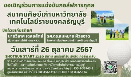 Blogกิจกรรม สมาคมศิษย์เก่า มทร.ธัญบุรี ขอเชิญร่วมกอล์ฟการกุศล สนับสนุนการศึกษาและสังคม tui sakrapee September 10, 2024 นายวิลาศ เฉลยสัตย์ นายกสมาคมศิษย์เก่า มหาวิทยาลัยเทคโนโลยีราชมงคลธัญบุรี (มทร.ธัญบุรี) เปิดเผยว่า มทร.ธัญบุรี ร่วมกับ สมาคมศิษย์เก่า มทร.ธัญบุรี จัดกิจกรรมสำคัญการแข่งขันกอล์ฟการกุศล เพื่อสนับสนุนด้านการศึกษาและด้านสังคม รายได้จากกิจกรรมดังกล่าวจะนำไปใช้เป็นทุนการศึกษาเพื่อมอบให้กับนักศึกษา มทร.ธัญบุรี และนักเรียนโรงเรียนสาธิตนวัตกรรม…