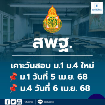 EZ Webmaster April 1, 2025 คอนเฟิร์ม สอบเข้า ม.1/ม.4 วันที่ 5-6 เมษายน นี้ EZ Webmaster April 1, 2025 ตามที่เกิดเหตุการณ์แผ่นดินไหวเมื่อวันที่ 28 มีนาคม 2568 และ สพฐ. ได้สั่งเลื่อนการสอบเข้าศึกษาต่อในระดับชั้น ม. 1 และ ม. 4 ออกไปก่อนนั้น จึงแจ้งให้ ผอ.สพท. และ ผอ.สศศ.แจ้งสถานศึกษาในสังกัดฯ ดำเนินการสอบนักเรียนเพื่อเข้าศึกษาต่อ ดังนี้ 1.ระดับชั้นมัธยมศึกษาปีที่ 1 กำหนดการสอบ วันเสาร์ที่ 5 เมษายน 2568 2.ระดับชั้นมัธยมศึกษาปีที่ 4 กำหนดการสอบ วันอาทิตย์ที่ 6 เมษายน… Continue Reading