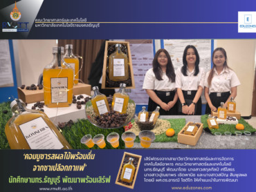 ‘คอมบูชารสผลไม้พร้อมดื่มจากชาเปลือกกาแฟ’ นักศึกษามทร.ธัญบุรี พัฒนาพร้อมเสิร์ฟ tui sakrapee March 31, 2025 ‘คอมบูชารสผลไม้พร้อมดื่มจากชาเปลือกกาแฟ’ เสิร์ฟตรงจากสาขาวิชาวิทยาศาสตร์และการจัดการเทคโนโลยีอาหาร คณะวิทยาศาสตร์และเทคโนโลยี มหาวิทยาลัยเทคโนโลยีราชมงคลธัญบุรี สูตรนี้ถูกพัฒนาโดย นางสาวสกุลกัลป์ ศรีโสธร นางสาวปุณยาพร เชิดพานิช และ นางสาวสปัญ สินพูลผล นักศึกษาชั้นปีที่ 4 โดยมี ผู้ช่วยศาสตราจารย์ ดร.อารณี โชติโก ร่วมให้คำแนะนำในการพัฒนาสูตร นางสาวสกุลกัลป์ ศรีโสธร เล่าว่า คอมบูชาโดยทั่วไปจะถูกเตรียมโดยการหมักดำหรือชาเขียวกับ Symbiotic Culture Of Bacteria and Yeast หรือ SCOBY ซึ่งปัจจุบันได้รับความสนใจจากผู้บริโภคที่ใส่ใจสุขภาพ คอมบูชาสามารถให้ประโยชน์ต่อสุขภาพ เช่น การเสริมสร้างระบบภูมิคุ้มกัน การปรับสมดุลลำไส้ การลดระดับคอเลสเตอรอล ด้วยกระบวนการหมักมีการผลิตกรดอะซิติก ทำให้คอมบูชามีรสชาติและกลิ่นที่แรง ส่งผลให้ผู้บริโภคไม่พึงพอใจ มีแนวคิดในการพัฒนาคอมบูชารสผลไม้พร้อมดื่มจากชาเปลือกกาแฟขึ้นมา ซึ่งในเปลือกกาแฟมีสารต้านอนุมูลอิสระที่สูง จึงนำมาใช้เป็นวัตถุดิบเพื่อปรับปรุงรสชาติและกลิ่นของคอมบูชา โดยนางสาวปุณยพร เชิดพานิช เพิ่มเติมว่า ในการเตรียมชาเปลือกกาแฟ… Continue Reading