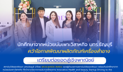 นักศึกษา นักศึกษาจากหน่วยบ่มเพาะวิสาหกิจ มทร.ธัญบุรี คว้าโอกาสพัฒนาผลิตภัณฑ์เครื่องสำอาง เตรียมต่อยอดสู่เชิงพาณิชย์ tui sakrapee August 28, 2024 เมื่อวันที่ 27 สิงหาคม 2567 สถาบันวิจัยและพัฒนา มทร.ธัญบุรี นำโดย ผศ.ดร.พุทธิวัต สิงห์ดง รองผู้อำนวยการสถาบันวิจัยและพัฒนา พร้อมกับนักศึกษาจากหน่วยบ่มเพาะวิสาหกิจ ที่คว้ารางวัลจากการประกวดโครงการ Innovative Health and beauty…
