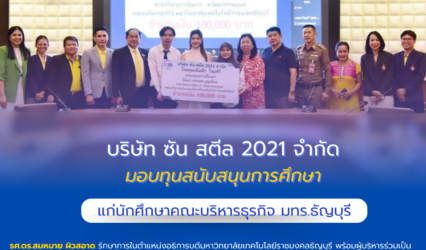 Blogนักศึกษา ซัน สตีล 2021 มอบทุนการศึกษาแก่นักศึกษาคณะบริหารธุรกิจ มทร.ธัญบุรี tui sakrapee August 28, 2024 รศ.ดร.สมหมาย ผิวสอาด รักษาการในตำแหน่งอธิการบดีมหาวิทยาลัยเทคโนโลยีราชมงคลธัญบุรี พร้อมผู้บริหารร่วมเป็นสักขีพยานการมอบทุนการศึกษาแก่ นายรชต บุญเยี่ยม นักศึกษาคณะบริหารธุรกิจ โดย คุณเต็มฟ้า ไชยศิริ รองกรรมการผู้จัดการ บริษัท ซัน สตีล 2021 จำกัด…