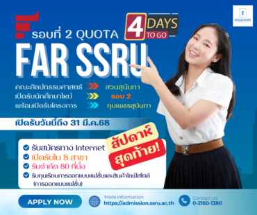 สัปดาห์สุดท้าย!ศิลปกรรมศาสตร์ สวนสุนันทา เปิดรับรอบที่ 2 Quota 8 สาขา พร้อมมอบทุนเพชรสุนันทา เรียนการออกแบบแฟชั่น tui sakrapee March 27, 2025 คณะศิลปกรรมศาสตร์ มหาวิทยาลัยราชภัฏสวนสุนันทา เปิดรับสมัครคัดเลือกนักเรียนระดับมัธยมศึกษาตอนปลายสายสามัญเข้าศึกษาในโครงการคัดเลือกบุคคลเข้าศึกษาระดับปริญญาตรี ระบบโควตา ประเภทความสามารถทางวิชาการ และประเภทความสามารถพิเศษ ประจำปีการศึกษา 2568 (รอบที่ 2 Quota) พร้อมรับสมัครคัดเลือกบุคคลเข้าศึกษา ภาคปกติ ระดับปริญญาตรี ในโครงการทุนเพชรสุนันทา กำหนดการรับสมัคร สาขาที่รับสมัครคณะศิลปกรรมศาสตร์ คุณสมบัติเฉพาะ – สาขาวิชาศิลปะการแสดง (ศิลปะการละครและความเป็นผู้ประกอบการสร้างสรรค์) มีทักษะที่เกี่ยวข้องกับศิลปะการแสดง เช่น การกำกับการแสดง การเขียนบท การร้องเพลง การเต้นรำประเภทต่างๆ การออกแบบเสื้อผ้า การแต่ง – สาขาวิชาศิลปะการแสดง(นาฏศิลป์ไทย) มีความรู้ความสามารถและทักษะในด้านนาฏศิลป์ไทยเช่น รำแม่บทเล็ก การแสดงพื้นเมือง รำเดี่ยว รำคู่ ระบำแบบมาตรฐาน และระบำเบ็ดเตล็ดชุดต่างๆ มีความกล้าแสดงออก มีความคิดสร้างสรรค์ และมีคุณสมบัติอื่นที่เกี่ยวข้องกับศิลปะการแสดง เช่นแต่งหน้า… Continue Reading