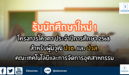 Blog คณะเทคโนโลยีและการจัดการอุตสาหกรรม มจพ. รับสมัครนักศึกษาใหม่ ปีการศึกษา 2568 EZ Webmaster August 21, 2024 คณะเทคโนโลยีและการจัดการอุตสาหกรรม มหาวิทยาลัยเทคโนโลยีพระจอมเกล้าพระนครเหนือ วิทยาเขตปราจีนบุรี รับสมัครนักศึกษาใหม่ โครงการโควตา ประจำปีการศึกษา 2568 สำหรับผู้มีวุฒิ ปวช. และ ปวส. รับสมัครระหว่างวันที่ 13 สิงหาคม 2567 –…