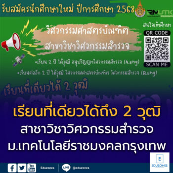 เรียนที่เดียวได้ถึง 2 วุฒิ สาขาวิชาวิศวกรรมสำรวจ ม.เทคโนโลยีราชมงคลกรุงเทพ EZ Webmaster March 23, 2025 เปิดรับสมัครแล้ววันนี้ “เรียนที่นี่ที่เดียว…ได้ถึง 2 วุฒิ ” ถ้าคุณต้องการเพิ่มทางเลือกในชีวิต อย่ามองข้ามเรา แล้วมาเป็นส่วนหนึ่งของหลักสูตรที่มีความต้องการของตลาดแรงงานกันจ้า : คุณวุฒิที่ใช้รับสมัคร สำเร็จการศึกษาระดับประกาศนียบัตรวิชาชีพ (ปวช.) ในสาขาวิชาช่างสำรวจ ช่างก่อสร้าง ช่างเทคนิคสถาปัตยกรรม หรือเทียบเท่า หรือสำเร็จการศึกษาระดับมัธยมศึกษาตอนปลาย (ม.6) โดยมีจำนวนหน่วยกิตของกลุ่มสาระการเรียนรู้คณิตศาสตร์ และ กลุ่มสาระการเรียนรู้วิทยาศาสตร์และเทคโนโลยีรวมกันไม่น้อยกว่า 20 หน่วยกิต ดูเว็บไซต์ https://eng-se.rmutk.ac.th/ Continue Reading