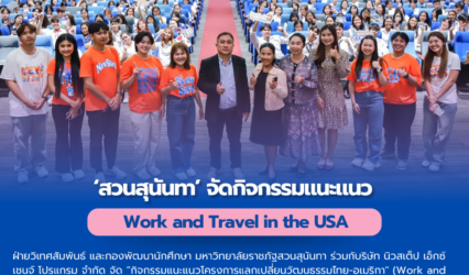 นักศึกษา สวนสุนันทาจัดกิจกรรมแนะแนวโครงการแลกเปลี่ยนวัฒนธรรมไทย-อเมริกา tui sakrapee August 14, 2024 วันที่ ๘ สิงหาคม ๒๕๖๗ – ฝ่ายวิเทศสัมพันธ์ และกองพัฒนานักศึกษา มหาวิทยาลัยราชภัฐสวนสุนันทา ร่วมกับริษัท นิวสเต็ป เอ็กซ์เชนจ์ โปรแกรม จำกัด จัด “กิจกรรมแนะแนวโครงการแลกเปลี่ยนวัฒนธรรมไทย-อเมริกา” (Work…