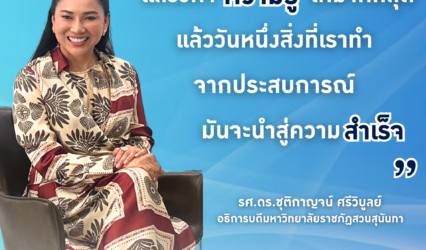 Blog บทสัมภาษณ์ รศ.ดร.ชุติกาญจน์ ศรีวิบูลย์ อธิการบดีมหาวิทยาลัยราชภัฏสวนสุนันทา EZ Webmaster August 14, 2024 บทสัมภาษณ์ รศ.ดร.ชุติกาญจน์ ศรีวิบูลย์ อธิการบดีมหาวิทยาลัยราชภัฏสวนสุนันทา เมื่อวัน พุธที่ 7 สิงหาคม รศ.ดร.ชุติกาญจน์ ศรีวิบูลย์ ดำรงตำแหน่งอธิการบดีมหาวิทยาลัยราชภัฏสวนสุนันทา ได้ให้สัมภาษณ์ในประเด็นความเป็นมาของท่านตั้งแต่สมัยอดีตที่ส่งผลต่อปัจจุบันให้ท่านเป็นอธิการมหาวิทยาลัยราชภัฏสวนสุนันทาในวันนี้ โดยเล่าย้อนไปถึงชีวิตในวัยประถมศึกษาที่โรงเรียน ขลุงรัชดาภิเษก ที่เป็นต้นทางสู่ความสำเร็จในชีวิต -อะไรเป็นจุดเริ่มต้นของการทำงาน…