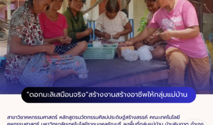 Blogครู-อาจารย์ คหกรรมศาสตร์ มทร.ธัญบุรี ถ่ายทอดองค์ความรู้ “ดอกมะลิเสมือนจริง”สร้างงานสร้างอาชีพให้กลุ่มแม่บ้าน tui sakrapee August 8, 2024 สาขาวิชาคหกรรมศาสตร์ หลักสูตรนวัตกรรมศิลปประดิษฐ์สร้างสรรค์ คณะเทคโนโลยีคหกรรมศาสตร์ มหาวิทยาลัยเทคโนโลยีราชมงคลธัญบุรี ถ่ายทอดองค์ความรู้ “ดอกมะลิเสมือนจริง”สร้างงานสร้างอาชีพให้กับกลุ่มแม่บ้าน นำทีมโดย ผู้ช่วยศาสตราจารย์วินัย ตาระเวช อาจารย์ประจำสาขาวิชาคหกรรมศาสตร์ร่วมกับนางสาววรรณภา โรจน์สุวณิชกร นักวิชาการศึกษา และนักศึกษาลงพื้นที่ กลุ่มแม่บ้าน บ้านหินดาต อำเภอปางศิลาทอง…