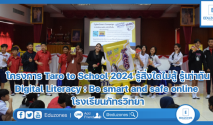 นักเรียน โครงการ Taro to School 2024 รู้สิ่งใดไม่สู้ รู้เท่าทัน Digital Literacy : Be smart and safe online โรงเรียนผดุงปัญญา EZ Webmaster August 2, 2024 “ภัยจากโลกออนไลน์พัฒนาให้มีความแนบเนียนแยบยลมากขึ้นทุกวัน น้องๆ ต้องเรียนรู้จักที่จะรักษาความเป็นส่วนตัวและรู้เท่าทันภัยเพื่อจะได้ไม่ตกเป็นเหยื่อจากภัยอันตราย” อ.สุกัญญา โสเก่าข่า ได้ให้ข้อคิดกับน้อง ๆ ในโครงการ Taro to School 2024 รู้สิ่งใดไม่สู้ รู้เท่าทัน Digital Literacy…