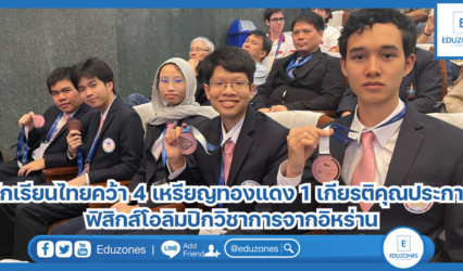 นักเรียน นักเรียนไทยคว้า 4 เหรียญทองแดง 1 เกียรติคุณประกาศ ฟิสิกส์โอลิมปิกวิชาการจากอิหร่าน EZ Webmaster August 1, 2024 รองศาสตราจารย์ ดร.ธีระเดช เจียรสุขสกุล ผู้อำนวยการ สถาบันส่งเสริมการสอนวิทยาศาสตร์และเทคโนโลยี (สสวท.) เปิดเผยว่าตามที่ได้คัดเลือกและจัดส่งผู้แทนประเทศไทยไปแข่งขันฟิสิกส์โอลิมปิกระหว่างประเทศ ครั้งที่ 54 ประจำปี พ.ศ. 2567 (54th IPhO 2024) ระหว่างวันที่ 20 – 29 กรกฏาคม 2567 ณ เมืองอิสฟาฮาน สาธารณรัฐอิสลามอิหร่าน ผลปรากฏว่านักเรียนไทยสามารถทำได้ 4 เหรียญทองแดง 1 เกียรติคุณประกาศ ดังนี้…