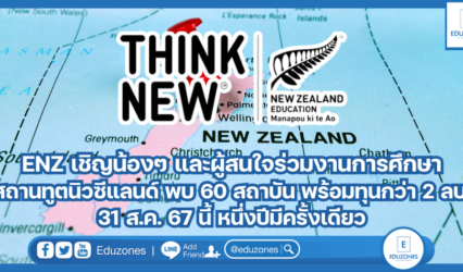 นักเรียน ENZ เชิญน้องๆและผู้สนใจร่วมงานการศึกษาสถานทูตนิวซีแลนด์ พบ 60 สถาบัน พร้อมทุนกว่า 2 ลบ. 31 ส.ค. 67 นี้ หนึ่งปีมีครั้งเดียว EZ Webmaster August 1, 2024 ใครอยากเรียนต่อนิวซีแลนด์โอกาสมาแล้ว ในงานใหญ่ประจำปีด้านการศึกษาต่อนิวซีแลนด์ ประเทศที่ตอบโจทย์ทั้งเด็กเล็กเด็กโต พร้อมทั้งสภาพแวดล้อม และระบบการศึกษา ประเทศอันดับ 1 ของโลก ในการเตรียมพร้อมนักเรียนสู่อนาคต หน่วยงานการศึกษานิวซีแลนด์ (Education New Zealand; ENZ) สถานทูตนิวซีแลนด์ ประจำประเทศไทย…