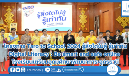 นักเรียน โครงการ Taro to School 2024 รู้สิ่งใดไม่สู้ รู้เท่าทัน Digital Literacy : Be smart and safe online โรงเรียนเตรียมอุดมศึกษาพัฒนาการ อุดรธานี EZ Webmaster July 30, 2024 “ในโลกดิจิทัลมีประโยชน์มหาศาล อันตรายก็รอบตัวเช่นกัน น้อง ๆ ต้องมีทักษะดิจิทัลจึงจะอยู่รอดได้อย่างปลอดภัย” อ.จิตปภา สุพันธะ ได้ให้ข้อคิดกับน้อง ๆ ในโครงการ Taro to School 2024 รู้สิ่งใดไม่สู้ รู้เท่าทัน…