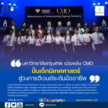 ม.กรุงเทพ รวมพลัง CMO ปั้นเด็กนิเทศฯ สู่วงการอีเวนต์ระดับมืออาชีพ tui sakrapee March 14, 2025 คณะนิเทศศาสตร์ มหาวิทยาลัยกรุงเทพ ลงนามความร่วมมือทางวิชาการ (MoU) กับ บริษัท ซีเอ็มโอ จำกัด (มหาชน) (CMO) โดยมีผศ.ดร.อริชัย อรรคอุดม คณบดีคณะนิเทศศาสตร์ และ คุณพิเชษฐ ตุรงคินานนท์ ประธานเจ้าหน้าที่บริหารโครงการบมจ.ซีเอ็มโอ เป็นผู้ลงนาม เพื่อร่วมมือกันพัฒนาศักยภาพนักศึกษา และอุตสาหกรรมไมซ์ (MICE) รวมไปถึงการจัดทำโครงการพิเศษต่าง ๆ และเป็นการต่อยอดโอกาสให้นักศึกษาได้เรียนกับผู้เชี่ยวชาญในวงการงานอีเวนต์แบบมืออาชีพต่อไป พร้อมกันนี้คุณอรชร ว่องพรรณงาม ผู้อำนวยการฝ่ายพัฒนาศักยภาพอุตสาหกรรมไมซ์ สำนักงานส่งเสริมการจัดประชุมและนิทรรศการ(องค์การมหาชน) (TCEB) กล่าวถึงการสนับสนุนส่งเสริมการผลิตกำลังคนไมซ์รุ่นใหม่ผ่านหลักสูตรมาตรฐานไมซ์สากล เร่งปั้นเยาวชนสู่เส้นทางสายอาชีพไมซ์ ณ อาคารนิเทศศาสตร์คอมเพล็กซ์ฯ มหาวิทยาลัยกรุงเทพ Continue Reading