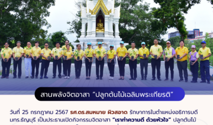 Blogนักศึกษา มทร.ธัญบุรี สานพลังจิตอาสา “ปลูกต้นไม้เฉลิมพระเกียรติ” tui sakrapee July 25, 2024 มทร.ธัญบุรี สานพลังจิตอาสา “ปลูกต้นไม้เฉลิมพระเกียรติ” เพิ่มพื้นที่สีเขียว เสริมสร้างความเป็นอยู่ที่ดี มหาวิทยาลัยเทคโนโลยีราชมงคลธัญบุรี (มทร.ธัญบุรี) จัดกิจกรรมจิตอาสา“เราทำความดี ด้วยหัวใจ” ปลูกต้นไม้เฉลิมพระเกียรติ พระบาทสมเด็จพระเจ้าอยู่หัว เนื่องในโอกาสพระราชพิธีมหามงคลเฉลิมพระชนมพรรษา 6 รอบ 28 กรกฎาคม…