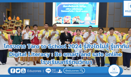 นักเรียน โครงการ Taro to School 2024 รู้สิ่งใดไม่สู้ รู้เท่าทัน Digital Literacy : Be smart and safe online โรงเรียนศรีรัตนวิทยา EZ Webmaster July 17, 2024 “เด็กทุกวันนี้ อยากรู้เก่งอะไรก็เรียนรู้และฝึกฝนได้ด้วยตัวเองจากโลกแหล่งเรียนรู้ออนไลน์ ความรู้หาง่ายขึ้นทุกวัน” อ.จิตปภา สุพันธะ (ครูมิกกี้) ได้ให้ข้อคิดกับน้อง ๆ ในโครงการ Taro to School 2024 รู้สิ่งใดไม่สู้ รู้เท่าทัน Digital…