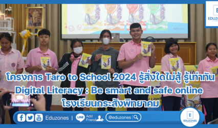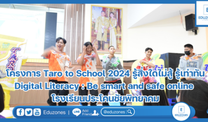 นักเรียน โครงการ Taro to School 2024 รู้สิ่งใดไม่สู้ รู้เท่าทัน Digital Literacy : Be smart and safe online โรงเรียนกระสังพิทยาคม EZ Webmaster July 12, 2024 “ทุกวันนี้เอไอทำงานแทนคนได้หลายอย่าง น้องๆ ต้องเรียนรู้ที่จะนำเอไอมาใช้ให้เกิดประโยชน์กับชีวิตการเรียนรู้” อ.สุกัญญา โสเก่าข่า (ครูแอน) ได้ให้ข้อคิดกับน้อง ๆ ในโครงการ Taro to School 2024 รู้สิ่งใดไม่สู้ รู้เท่าทัน Digital…