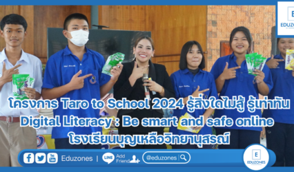นักเรียน โครงการ Taro to School 2024 รู้สิ่งใดไม่สู้ รู้เท่าทัน Digital Literacy : Be smart and safe online โรงเรียนบุญเหลือวิทยานุสรณ์ EZ Webmaster July 12, 2024 “โลกดิจิทัล เป็นโลกแห่งโอกาส น้องๆสนใจไขว่คว้าสิ่งใด ก็อยู่เพียงปลายนิ้ว” อ.จิตปภา สุพันธะ (ครูมิกกี้) ได้ให้ข้อคิดกับน้อง ๆ ในโครงการ Taro to School 2024 รู้สิ่งใดไม่สู้ รู้เท่าทัน…
