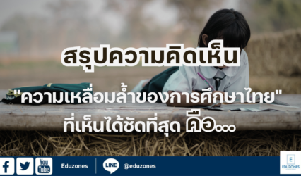 ครู-อาจารย์นักศึกษานักเรียน สรุปความคิดเห็น “ความเหลื่อมล้ำของการศึกษาไทย” ที่เห็นได้ชัดที่สุด คืออะไร? EZ Webmaster July 4, 2024 “ความเหลื่อมล้ำของการศึกษาไทย” ที่เห็นได้ชัดที่สุด คืออะไร? จากการสำรวจความคิดเห็นของชุมชนชาว Eduzones พบว่า มีผู้คนเข้ามาแสดงความคิดเห็นกันอย่างหลากหลาย โดยความคิดเห็นบางส่วนสะท้อนในมุมมองที่ว่า “ความเหลื่อมล้ำของการศึกษาไทย” สามารถเห็นได้อย่างชัดเจน จนไม่สามารถอธิบายออกมาเป็นคำพูดได้หมด ในขณะที่มีความคิดเห็นบางส่วนมองว่า มุมมองเกี่ยวกับความเหลื่อมล้ำเป็นเรื่องของความคิดส่วนบุคคล พร้อมทั้งมองว่าทุกคนสามารถเท่าเทียมกันได้เพราะทุกอย่างขึ้นอยู่กับศักยภาพ ความขยันและความพยายามของตนเอง วันนี้…