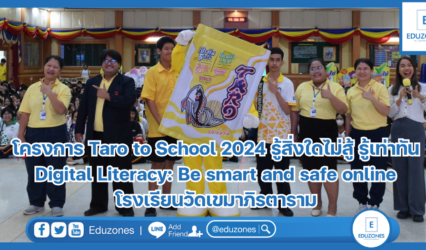 นักเรียน โครงการ Taro to School 2024 รู้สิ่งใดไม่สู้ รู้เท่าทัน Digital Literacy: Be smart and safe online โรงเรียนวัดเขมาภิรตาราม EZ Webmaster July 4, 2024 “ทุกวันนี้ การแสดงความคิดเห็นบนโลกออนไลน์ทำได้ง่ายมาก น้องๆต้องระวังทุกการกระทำบนโลกออนไลน์ เพราะ digital footprint จะอยู่ตลอดไป” อ.สุกัญญา โสเก่าข่า ได้ให้ข้อคิดกับน้อง ๆ ในโครงการ Taro to School 2024…