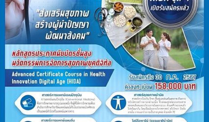 Blogครู-อาจารย์ ‘HIDA’ หลักสูตรนวัตกรรมการจัดการสุขภาพยุคดิจิทัล รุ่นที่ 4 เปิดรับสมัครแล้ววันนี้ tui sakrapee July 3, 2024 หลักสูตร HIDA รุ่นที่ 4 เปิดรับสมัครแล้ววันนี้ ✅ ส่งเสริมสุขภาพ เรียนรู้ศาสตร์การแพทย์ แผนปัจจุบัน แพทย์ทางเลือก เพื่อดูแลตนเอง ครอบครัว และบุคคลในองค์กรให้มีสุขภาพกายและใจที่ดี ✅ สร้างผู้นำปัญญา…