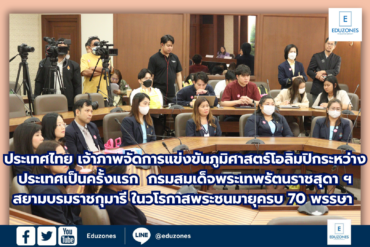 EZ Webmaster February 27, 2025 ประเทศไทย เจ้าภาพจัดการแข่งขันภูมิศาสตร์โอลิมปิกระหว่างประเทศเป็นครั้งแรก กรมสมเด็จพระเทพรัตนราชสุดา ฯ สยามบรมราชกุมารี ในวโรกาสพระชนมายุครบ 70 พรรษา EZ Webmaster February 27, 2025 เนื่องจากวันที่ 24 กุมภาพันธ์ 2568 – ประเทศไทยได้รับเกียรติให้เป็นเจ้าภาพจัดการแข่งขัน ภูมิศาสตร์โอลิมปิกระหว่างประเทศ ครั้งที่ 21 (The 21st International Geography Olympiad – iGeo 2025) ซึ่งจะ จัดขึ้นระหว่างวันที่ 26 กรกฎาคม – 1 สิงหาคม พ.ศ. 2568 ณ จุฬาลงกรณ์มหาวิทยาลัย กรุงเทพมหานคร โดยมีเยาวชนจากกว่า 50 ประเทศทั่วโลกเข้าร่วมแข่งขันและแลกเปลี่ยนองค์ความรู้ด้านภูมิศาสตร์… Continue Reading