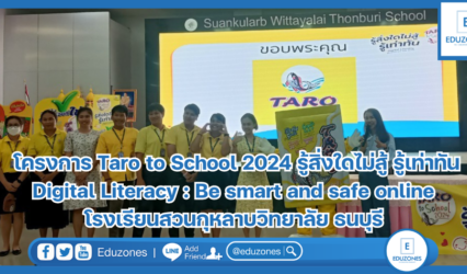 นักเรียน Taro to School 2024 รู้สิ่งใดไม่สู้ รู้เท่าทัน Digital Literacy : Be smart and safe online โรงเรียนสวนกุหลาบวิทยาลัย ธนบุรี EZ Webmaster July 3, 2024 “ยุคดิจิทัลนี้ เป็นยุคของคนรุ่นใหม่ มีโอกาสมากมายรออยู่ ขอให้น้อง ๆ ตั้งใจฝึกฝนอยู่เสมอ” อ.สุกัญญา โสเก่าข่า ได้ให้ข้อคิดกับน้อง ๆ ในโครงการ Taro to School 2024 รู้สิ่งใดไม่สู้…