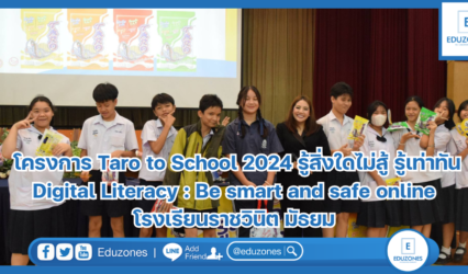 นักเรียน โครงการ Taro to School 2024 รู้สิ่งใดไม่สู้ รู้เท่าทัน Digital Literacy : Be smart and safe online โรงเรียนเทพศิรินทร์ นนทบุรี EZ Webmaster July 3, 2024 “ภัยจากโลกออนไลน์มีการพัฒนาให้มีความแนบเนียนแยบยลมากขึ้นทุกวัน น้องๆ ต้องเรียนรู้จักที่จะรักษาความเป็นส่วนตัวและรู้เท่าทันภัยเพื่อจะได้ไม่ตกเป็นเหยื่อ” อ.สุกัญญา โสเก่าข่า ได้ให้ข้อคิดกับน้อง ๆ ในโครงการ Taro to School 2024 รู้สิ่งใดไม่สู้ รู้เท่าทัน Digital Literacy…