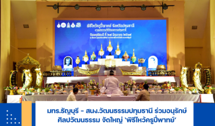 Blogนักศึกษา มทร.ธัญบุรี และสนง.วัฒนธรรมปทุมธานี ร่วมอนุรักษ์ศิลปวัฒนธรรม จัดใหญ่ ‘พิธีไหว้ครูปี่พาทย์’ tui sakrapee June 27, 2024 จังหวัดปทุมธานี โดยสำนักงานวัฒนธรรมจังหวัดปทุมธานี ร่วมกับคณะศิลปกรรมศาสตร์ มหาวิทยาลัยเทคโนโลยีราชมงคลธัญบุรี (มทร.ธัญบุรี) จัดใหญ่ในพิธีไหว้ครูปี่พาทย์จังหวัดปทุมธานี ภายใต้โครงการมหกรรมวิถีวัฒนธรรมปทุมธานี เพื่ออนุรักษ์ศิลปวัฒนธรรม ณ ห้องประชุมสงค์ธนาพิทักษ์ มทร.ธัญบุรี จ.ปทุมธานี ซึ่งมีเยาวชนนักศึกษากว่า 300 คน…