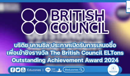 ครู-อาจารย์ บริติช เคานซิล ประกาศเปิดรับการเสนอชื่อเพื่อเข้าชิงรางวัล The British Council ELTons Outstanding Achievement Award 2024 EZ Webmaster June 13, 2024 บริติช เคานซิล องค์กรนานาชาติเพื่อความสัมพันธ์ทางวัฒนธรรมและโอกาสทางการศึกษาจากสหราชอาณาจักร ประกาศเปิดรับการเสนอชื่อเพื่อเข้าชิงรางวัล The British Council ELTons Outstanding Achievement Award 2024 รางวัลระดับนานาชาติอันทรงเกียรติที่มอบให้แก่บุคคลและองค์กรผู้อยู่เบื้องหลังด้านการพัฒนาการเรียนการสอนภาษาอังกฤษ เพื่อยกย่องและเชิดชูเกียรติยศแห่งความสำเร็จจากการทุ่มเทพัฒนาการเรียนการสอนอย่างไม่หยุดยั้ง ผ่านผลงานอันโดดเด่นทั้งการเขียน การสอน การประเมิน และการวิจัย…