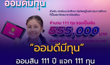 ทุนดีดีนักเรียน ออมสิน 111 ปี แจก 111 ทุน ให้นักเรียน นักศึกษา EZ Webmaster May 30, 2024 ธนาคารออมสิน “ฉลองครบรอบ 111 ปี” จัดกิจกรรม “ออมดีมีทุน” แจกทุนการศึกษา รวมมูลค่า 555,000 บาท สำหรับนักเรียน นักศึกษา คุณสมบัติ นักเรียน/นักศึกษา สังกัดอยู่ในสถาบันการศึกษาที่เป็นสมาชิกธนาคารโรงเรียน เงื่อนไขการพิจารณา การพิจารณาให้ทุนการศึกษา ประกอบด้วย 4…