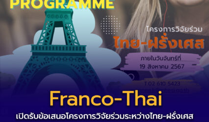 ทุนดีดีนักศึกษา เปิดรับข้อเสนอโครงการวิจัยร่วมระหว่างไทย-ฝรั่งเศส Franco-Thai Cooperation Programme ปี 2568-2569 EZ Webmaster May 30, 2024 กระทรวงการอุดมศึกษา วิทยาศาสตร์ วิจัยและนวัตกรรม (อว.) ร่วมกับรัฐบาลฝรั่งเศส เปิดรับข้อเสนอโครงการวิจัยร่วมภายใต้ความร่วมมือด้านอุดมศึกษาและการวิจัยระหว่างไทย-ฝรั่งเศส (Franco-Thai Cooperation Programme in Higher Education and Research/Franco-Thai Mobility Programme/…