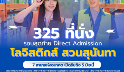 Blogนักเรียน 325 ที่นั่ง รอบสุดท้าย Direct Admission “โลจิสติกส์ สวนสุนันทา” 7 สาขาแห่งอนาคต รับถึง 5 มิ.ย.นี้ tui sakrapee May 28, 2024 วิทยาลัยโลจิสติกส์และซัพพลายเชน (วิทยาเขตนครปฐม) เปิดรับน้องใหม่รอบสุดท้าย ใน 7 สาขาแห่งอนาคตยอดฮิต จบแล้วไม่ตกงาน พร้อมมีทุนการศึกษามอบให้อีกหลายประเภท รวมรับรอบส่งท้าย 325 ที่นั่ง เท่านั้น #รอบสุดท้าย #มหาวิทยาลัยราชภัฏสวนสุนันทา รอบรับตรงอิสระ Direct Admission…